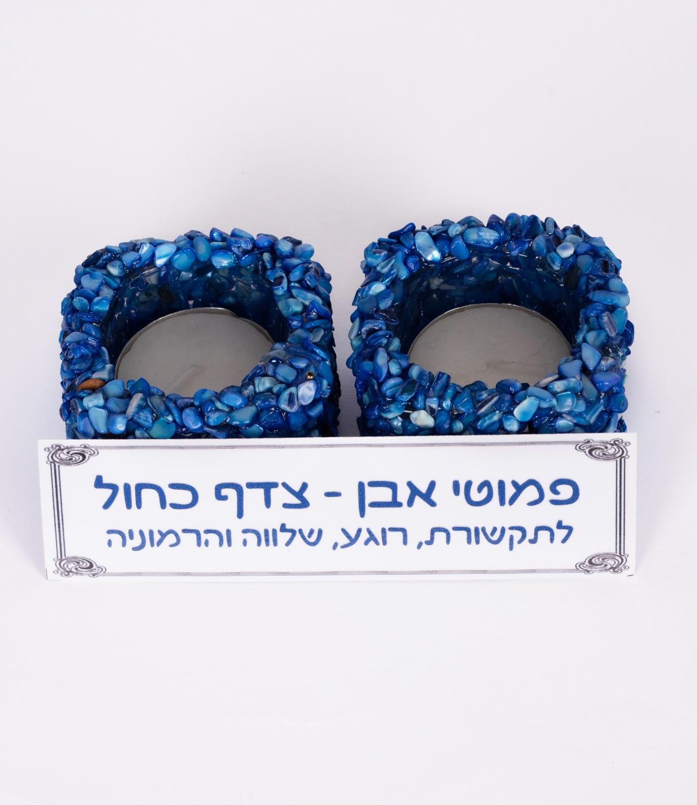 זוג פמוטי אבן צדף כחול המשדרות שלווה והרמוניה
